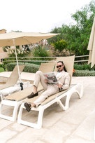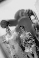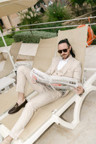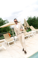 Zur gleichen Zeit, ein paar Türen weiter, schlüpfte Kevin in seinen beigen Leinenanzug. Easy, stilvoll und absolut mühelos spiegelte er genau das wider, was eine mallorquinische Hochzeit so besonders macht: entspannte Eleganz.