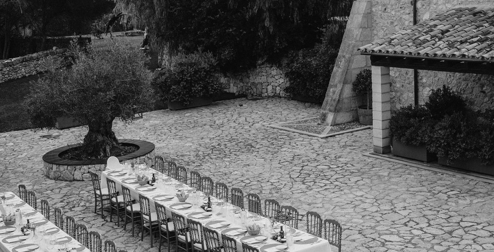 Zwischen alten Steinmauern und Olivenzweigen wurde die lange Tafel gedeckt – liebevoll, detailverliebt, ganz ohne Kitsch. Kerzen, Leinentücher, Olivenzweige, weiches Licht. Alles bereit für einen Abend unter Sternen.